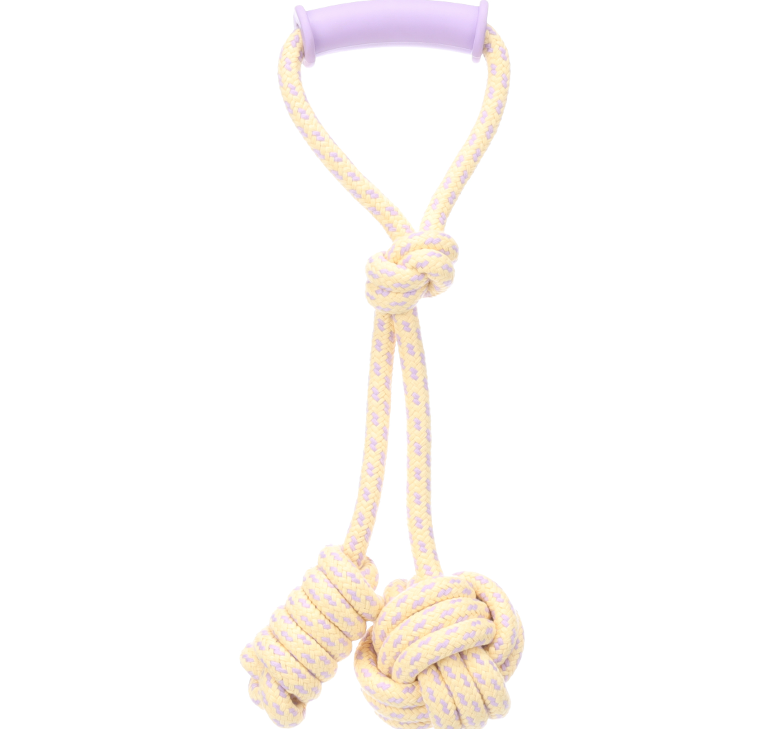 CORDE À TIRER AVEC POIGNÉE TPR ET NOEUDS TWIST VIOLET/JAUNE 35,5x12x8CM